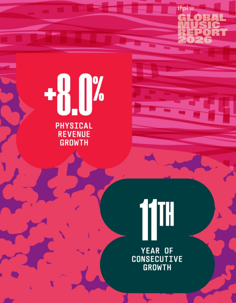 Physical formats (vinyl, CDs, cassettes) made a strong comeback in 2025, growing by 8% after a 3% decline in 2024.